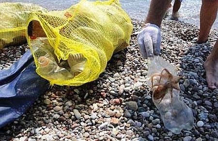 Antalya Konyaaltı Sahili falezlerde gerçekleştirilen dip temizliğine 22 balıkadam katıldı. Bir saat süreyle deniz dibinde temizlik yapan balıkadamlar, topladıkları çöpleri çuvallarla sahile çıkardı. Çöpler arasında pet ve içki şişeleri, şemsiye ve bankın bulunması dikkat çekti. Ayrıca çöplerin arasında pet şişelerde balıkların çıkması da dikkat çekti. Balıkadamlar, çıkardıkları banka sahilde oturarak gazetecilere poz verdi.