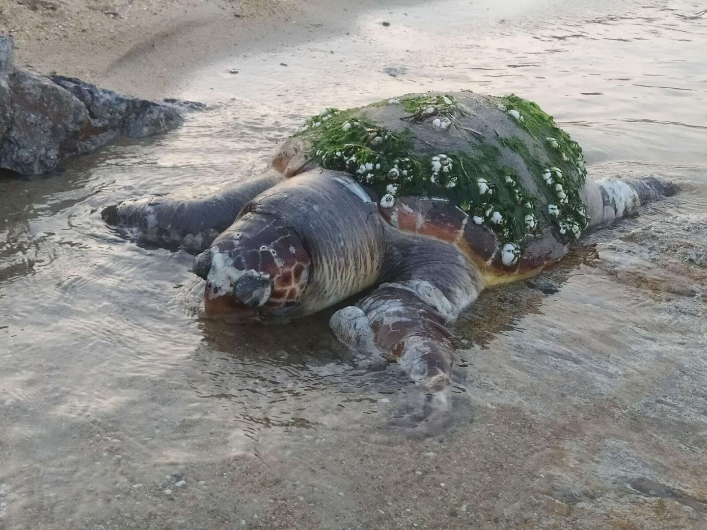Edirne'nin Enez ilçesinde deniz sahilinde yaşlı kaplumbağa karaya vurdu.