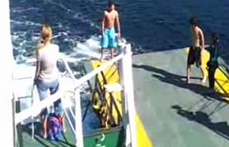 Marmara Adası'ndan önceki gün kalkan arabalı feribot, iskeleden ayrıldıktan sonra kapağını kapatmaya başladı. Kapak yavaş kapanırken, iskeleye kıyafetlerini bıraktıktan sonra feribota binen biri kız 8 kişi, deniz aracının iskeleden ayrılmasından sonra, birbirleriyle şakalaşarak sırayla denize atlamaya başladı. Vapurun arka tarafındanki pervanesinin yarattığı tehlikeye rağmen denize atlayan gençlerin tehlikeli oyununu yolcular şaşkınlıkla izledi. Ancak yolcular uyarıda bulunmadı. Bu anları vapurdaki bir yolcu tarafından cep telefonuyla görüntüledi. Yüzen gençler ardından iskeleye çıktı.